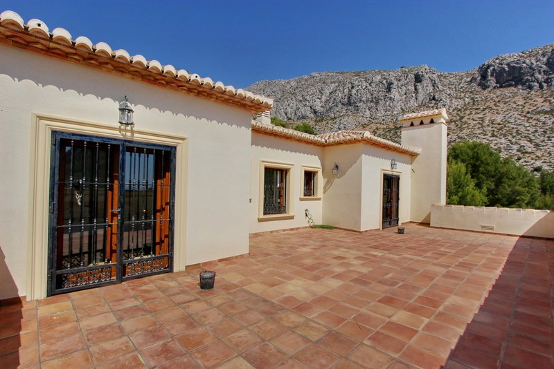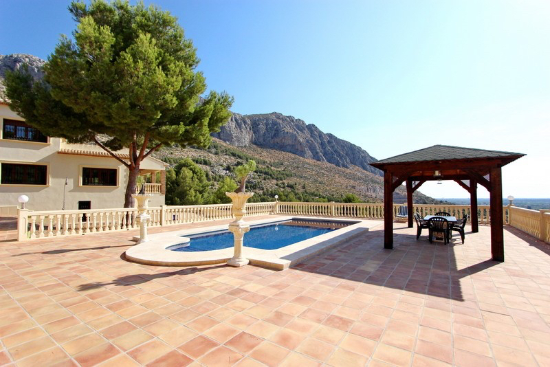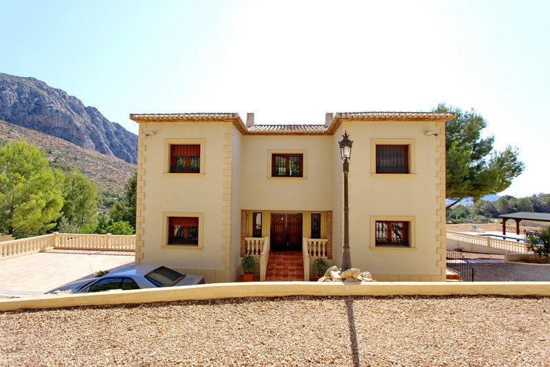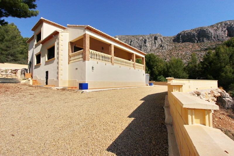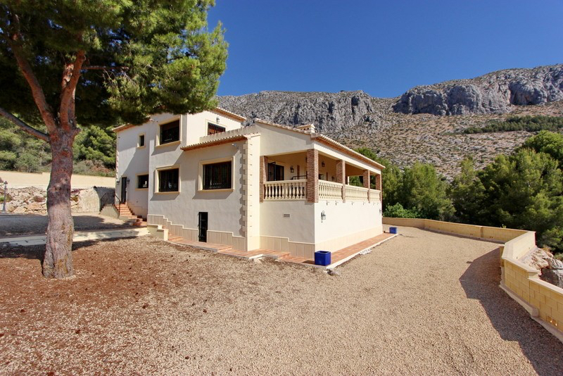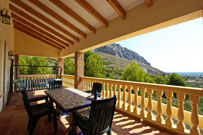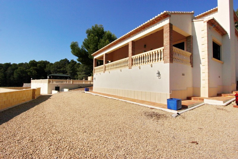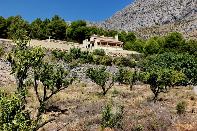 The house nestles at the foot of the Sierra Segaria Mountain Range, the name of the mountains and Natural Park adjacent to the land surrounding the house. This mountain range lies to the North of the property, and as such, somewhat protects the house in winter from the cold Northerly winds that can sometimes sweep down the Costa Blanca. As do the Pine Trees surrounding the Southerly and Westerly sides of the house.