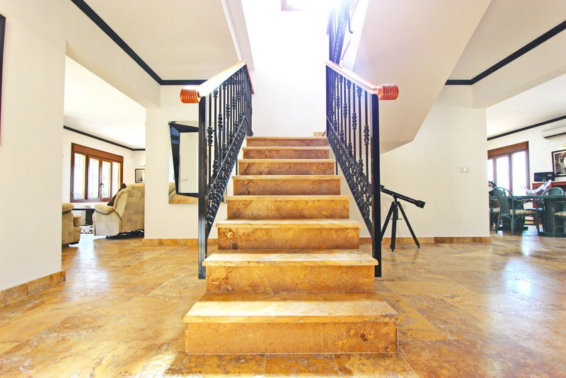 The marble floors throughout the house are laid with Travertine Amarillo Marble in a houndstooth pattern. Exterior pathways, large Pool Terrace, the House Terraces and numerous Pillars are laid with Hand Made Terracota Tile. All exterior Door and Window surrounds including all Balustrades are constructed using Tosca Cream Stoneware.