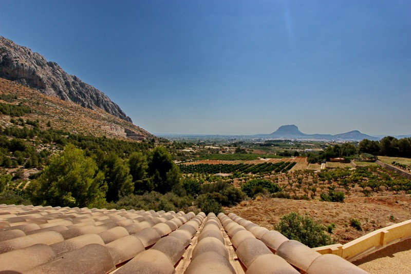 La Cortijo Eivissa or Casa Ibiza, a large, exclusive and very private recently constructed Four Bedroom, Five Bathroom, Country House situated on a hill top enclave that rises to the peak of a pine forested estate. Surrounded by orange, lemon and avocado groves including an abundance of pine trees, incorporating uninterrupted vistas down the Vinyals Valley to the white coast beaches of Costa Blanca. Views to the sea with La Sella Golf, the Mountain of Montgo, Denia Castle and on a clear day the Balearic Islands of Ibiza and Formentera. Location of the house, situated in its own extensive estate in the quiet oasis of the Raco de Vinyal’s Valley, adjacent to the Alberg of the Sierra Segaria Natural Park and close to the small, idyllic village of Beniarbeig. Just over the hill to the south is the popular but larger and busier Orba Valley. The whole area is without doubt, one of the most beautiful parts of the Costa Blanca and Espana.