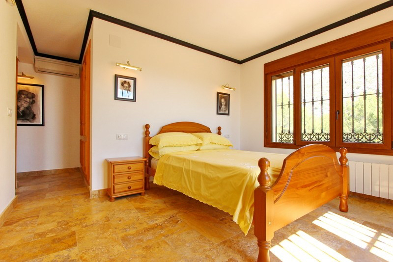 North and South Wing Master Bedrooms have French Windows leading onto the large Private Solarium again laid with Handmade Terracota Tile. The large 120 sq metre solarium overlooks the Raco De Vinyals Valley and Sierra Segaria Mountains and Natural Park. All bedrooms have On-Suite Bathroom facilities. The Master Bedroom Suite, which uses all the available space in the South Wing of the House, encompassing Private Solarium, Large Master Bedroom, Separate Dressing Room, Bathroom with Circular Bath, large separate Glass Block enclosed Shower Area and His & Her Washbasins. The Marble Stairway from the Entrance Hall to the Upper Floor has had fitted to the Landing Area, a Steel Double Framed Triple Lock Security Door built into the block and concrete wall. This allows for the Upper Floor of the house to become a Safe and Secure area with Security Cameras and Prosegur Alarm System Communication combined.